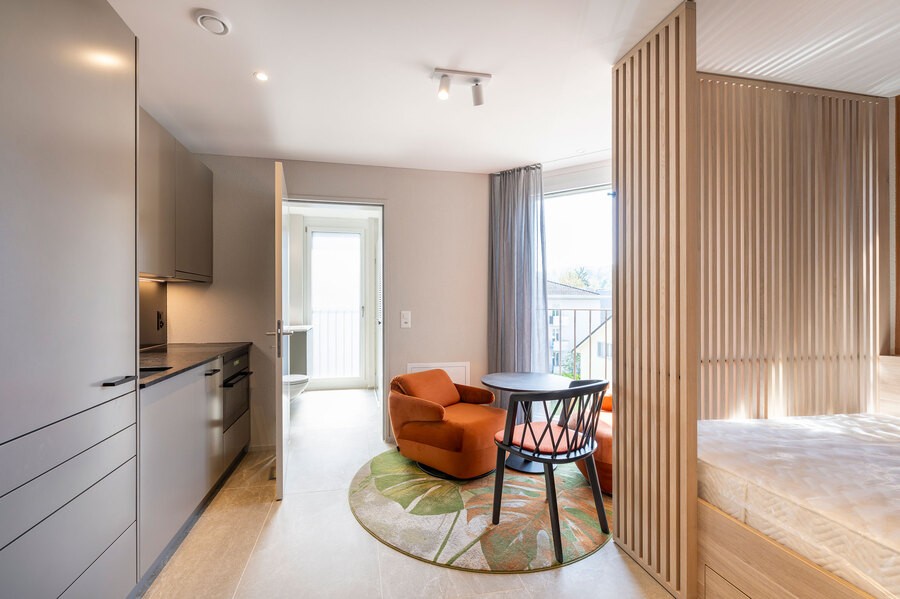 Ob als spontane Übergangslösung oder Paradies für Minimalist:innen, ob als Zürcher Oase für Expats und Weltenbummler:innen, ob für Junge oder Alte, ob kurz oder lang oder einfach so: Diese coolen, kompakten Studios mit separatem Bad bieten auf kleinstem Raum alles, was eine Person so braucht – und nicht mehr. Hochwertig, hell, modern und gut gelegen.