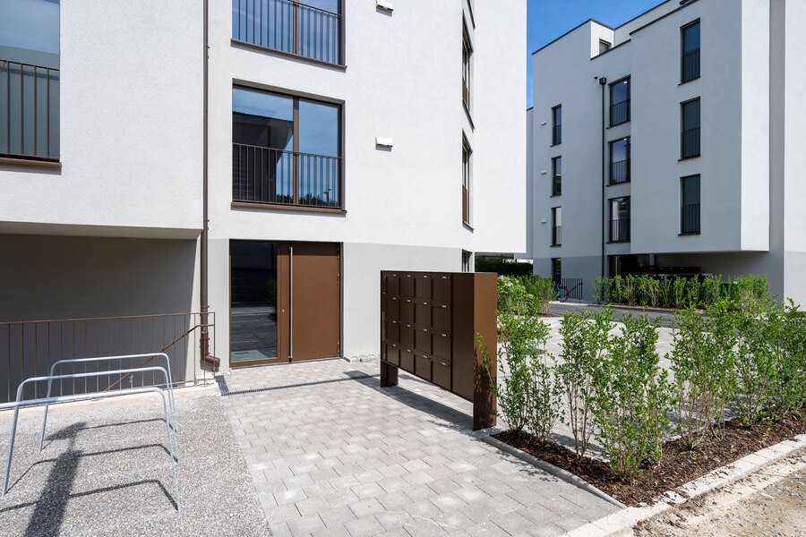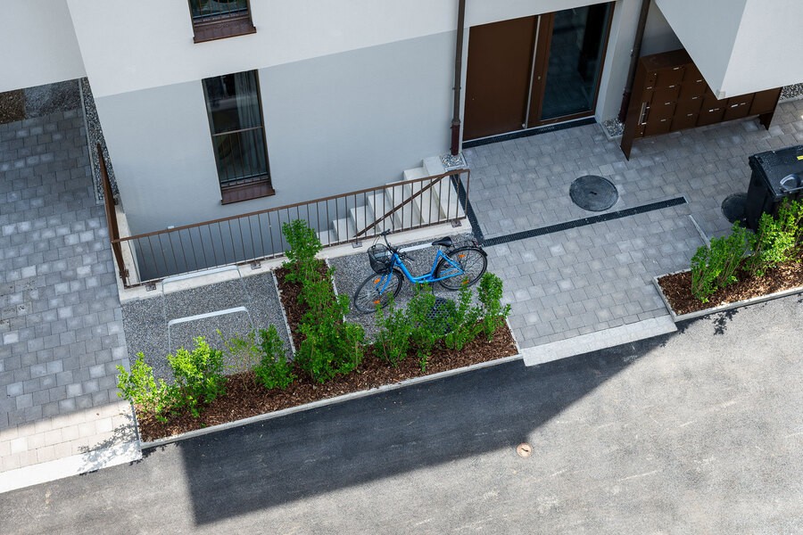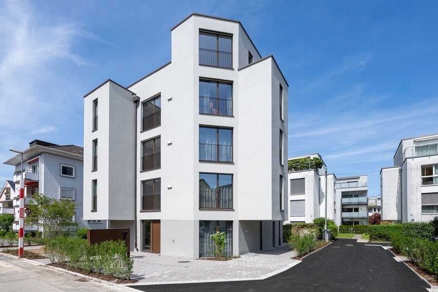 Haus A bietet drei und Haus B zwei Parkplätze, die bei Bedarf separat gemietet werden können. Ein Parkplatz kostet CHF 100.– pro Monat. Für Velos gibt es Abstellplätze.