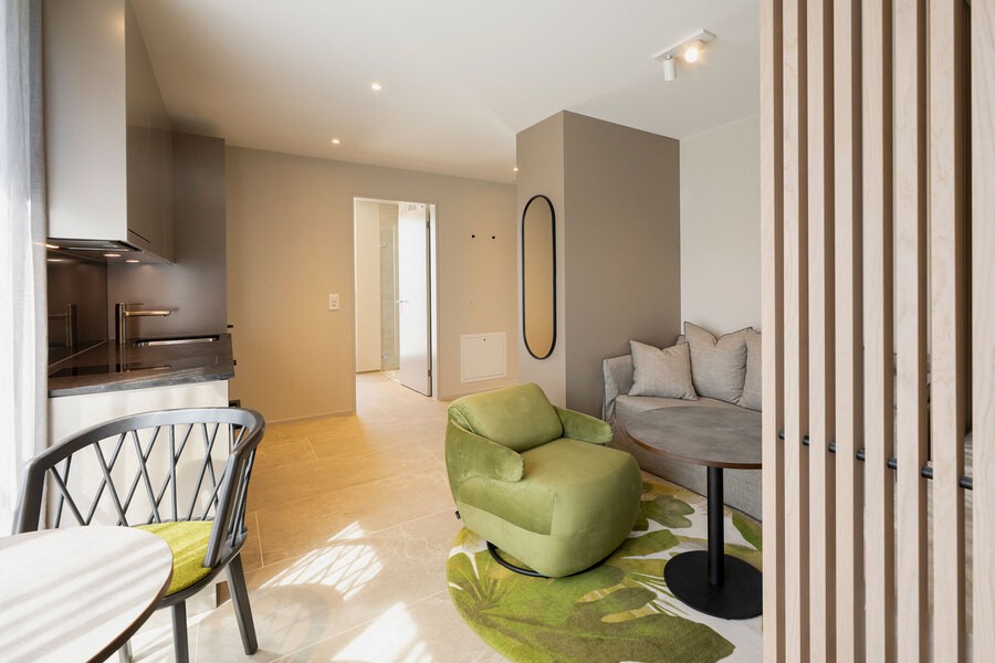 Der hochwertige Innenausbau mit ausgewählten Materialien und die stilvolle, moderne Möblierung garantieren ein einzigartiges Wohnerlebnis. Einfach grossartig – und das auf kleinstem Raum.