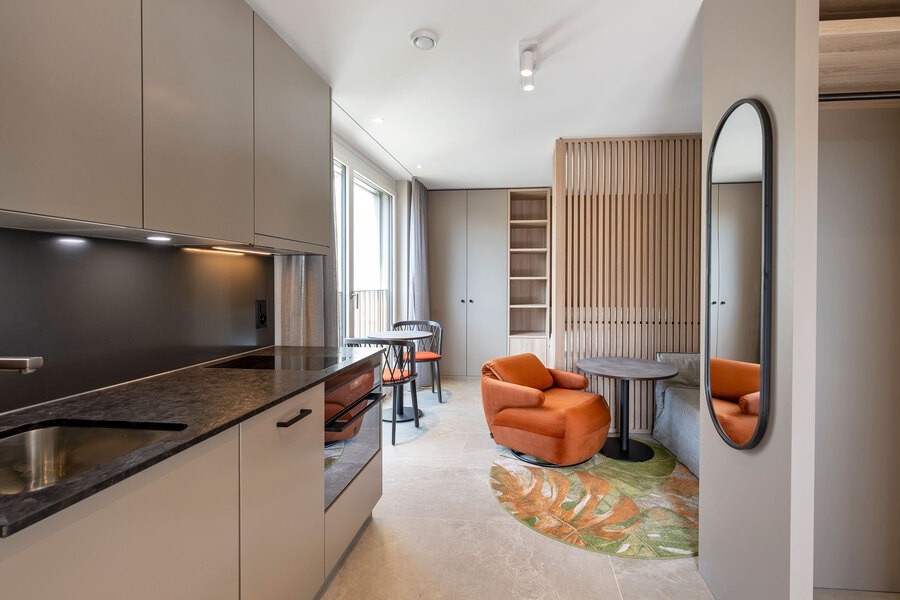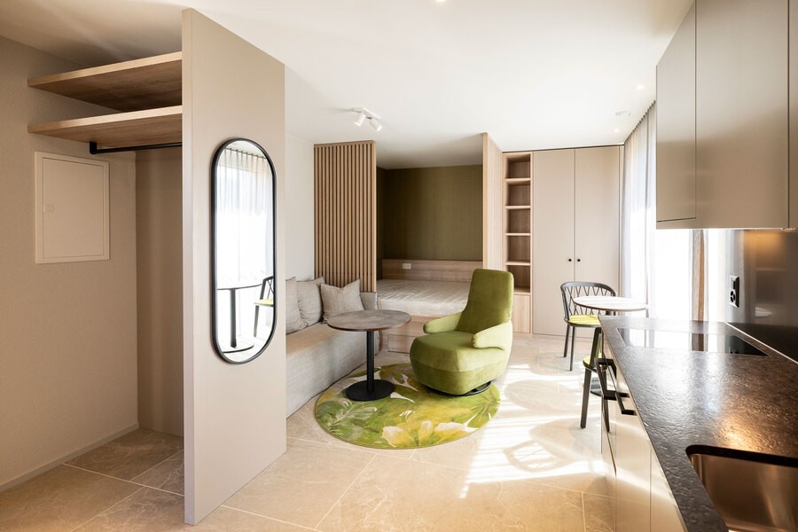 Die Tiny Apartments sind für eine Person konzipiert. Aber keine Sorge: Auch Ihr Besuch wird sich bei Ihnen wohlfühlen.