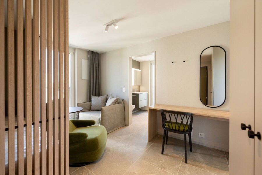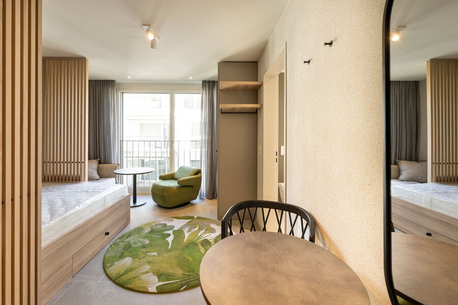 Ob als spontane Übergangslösung oder Paradies für Minimalist:innen, ob als Zürcher Oase für Expats und Weltenbummler:innen, ob für Junge oder Alte, ob kurz oder lang oder einfach so: Diese coolen, kompakten Studios mit separatem Bad bieten auf kleinstem Raum alles, was eine Person so braucht – und nicht mehr. Hochwertig, hell, modern und gut gelegen.